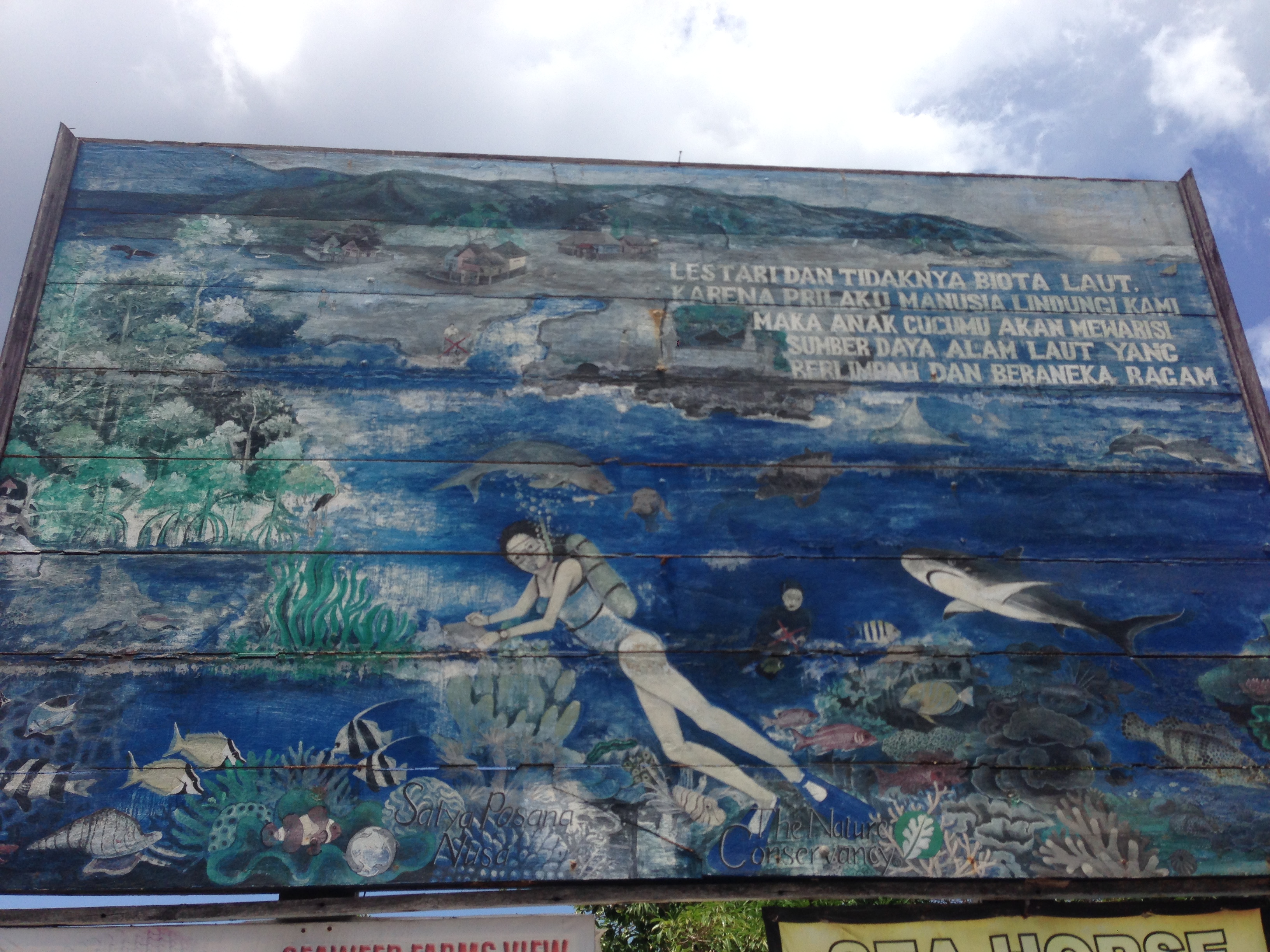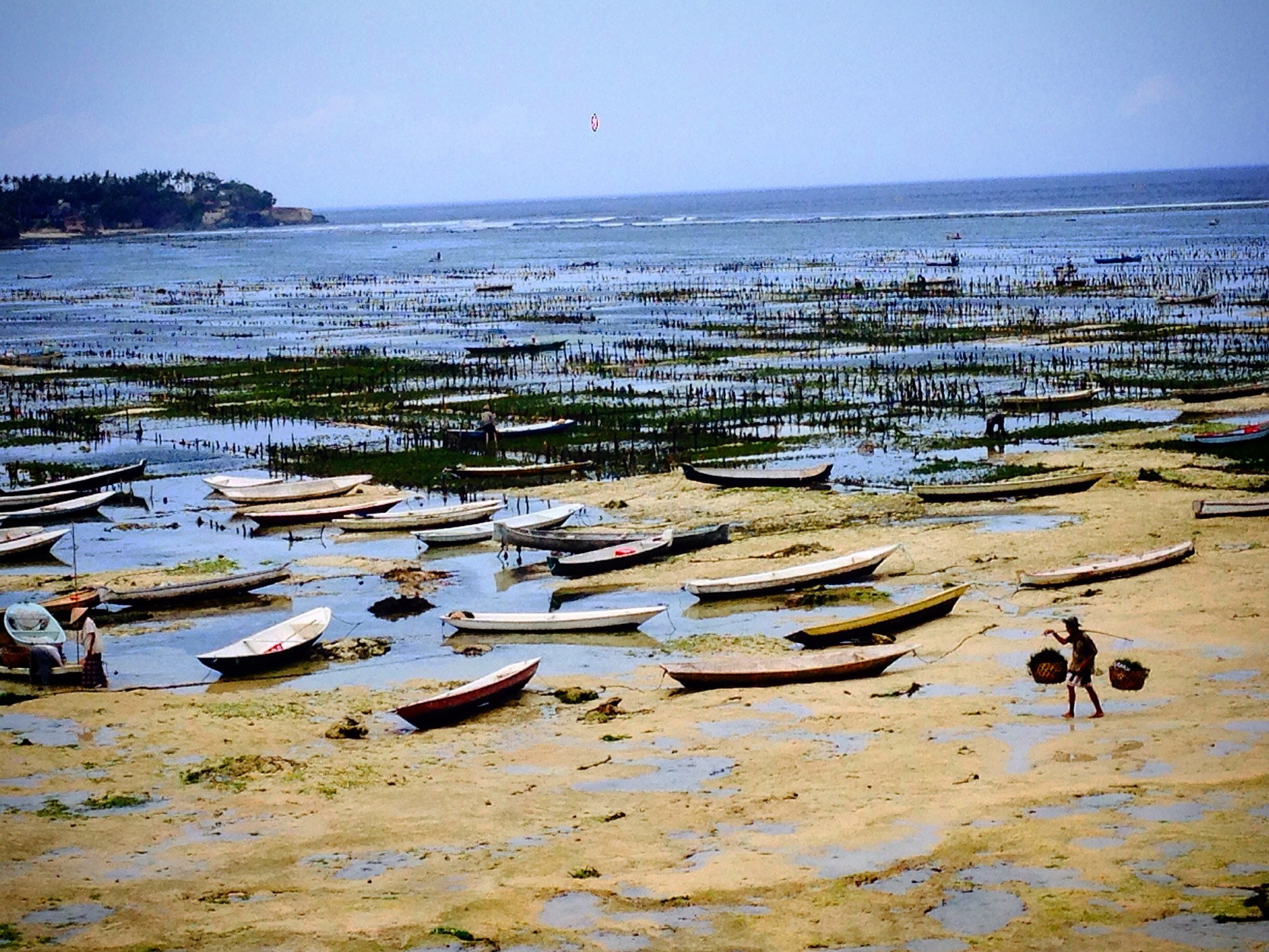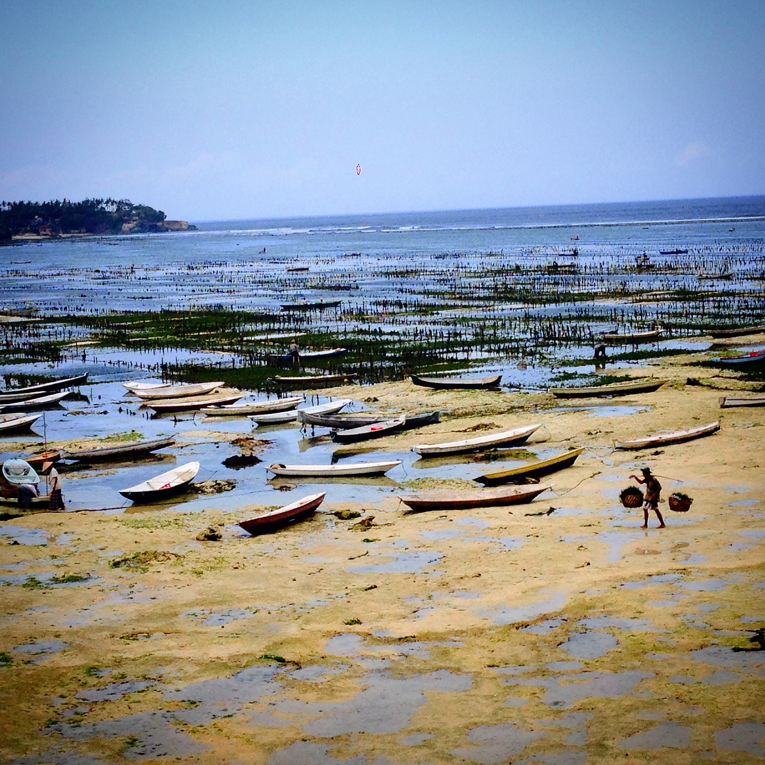 We were carted around in the back of a truck which was a very efficient way of transportation to see the island. We stopped to see the Seaweed Farm that is a major income producer and exporter for the island, there are only two like it,. Seaweed farming is separated with ropes that are tied up for it to grow. Every household can make one to two million rupiah ($200 USD) a month from the red and green algae – just enough income to survive on these islands.