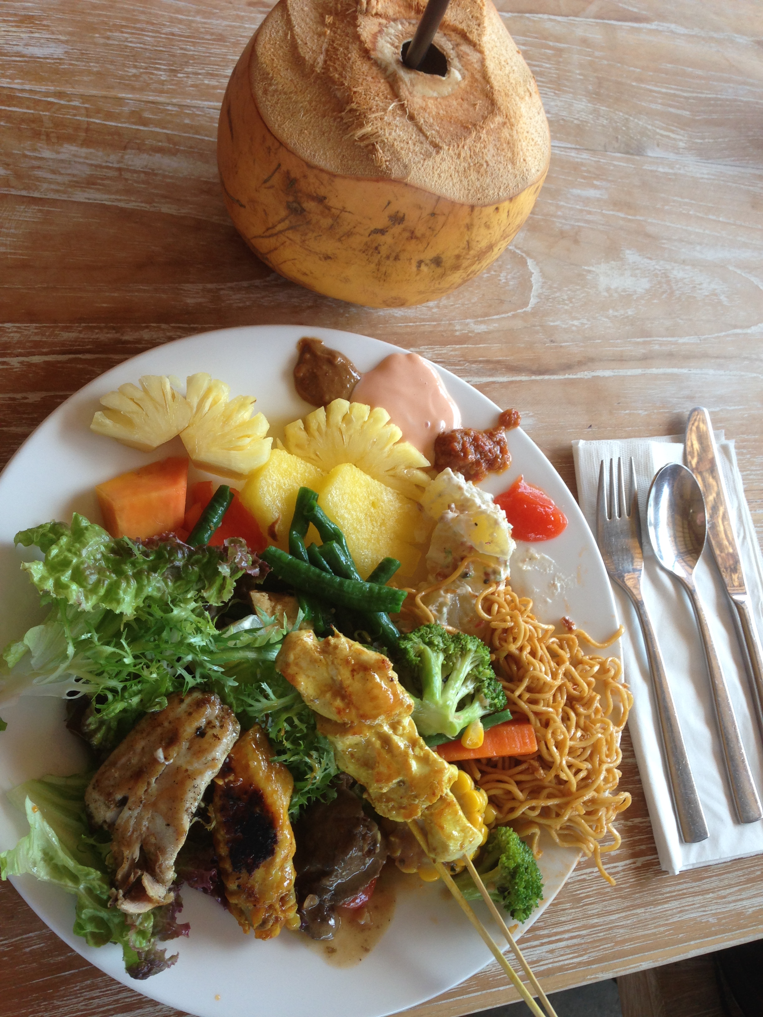 We met each time at the Lembongan Beach Club & Resort where they had fresh cut coconuts and freshly cooked buffet for lunch and for high tea they had coffee, tea with battered and fried assortment of pineapple, banana & apples. They weren’t crispy but still had a great oily and sweet taste.